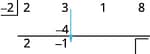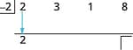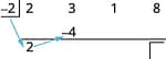 | Multiply that coefficient by the divisor and place the result in the second row under the second coefficient. | ![]() |