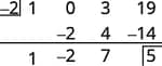 | Check: Use synthetic division to check. | ![]() The remainder is $5$. |