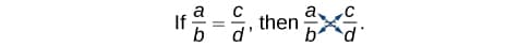 Multiply $a(d)$ and $b(c)$, which results in $ad=bc$.