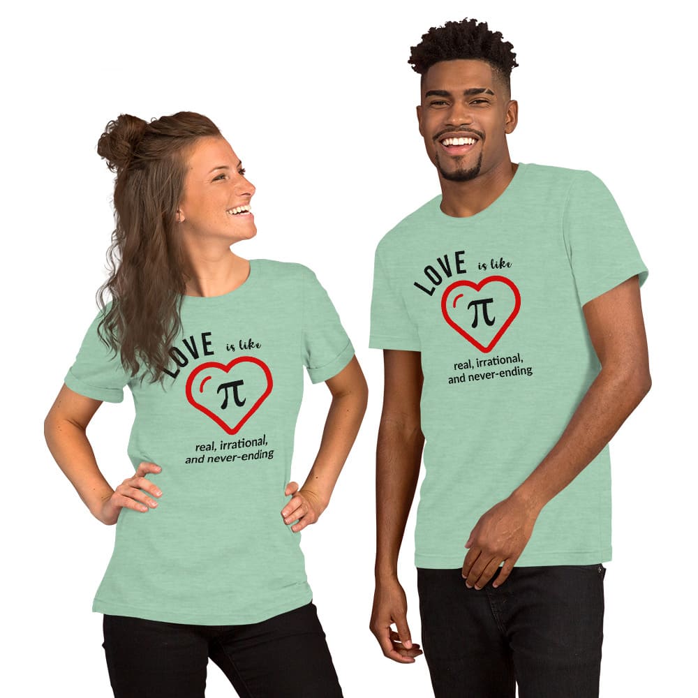 Love is like pi… real, irrational, and never ending t-shirt. This t-shirt is everything you’ve dreamed of and more. It feels soft and lightweight, with the right amount of stretch. It’s comfortable and flattering for all.