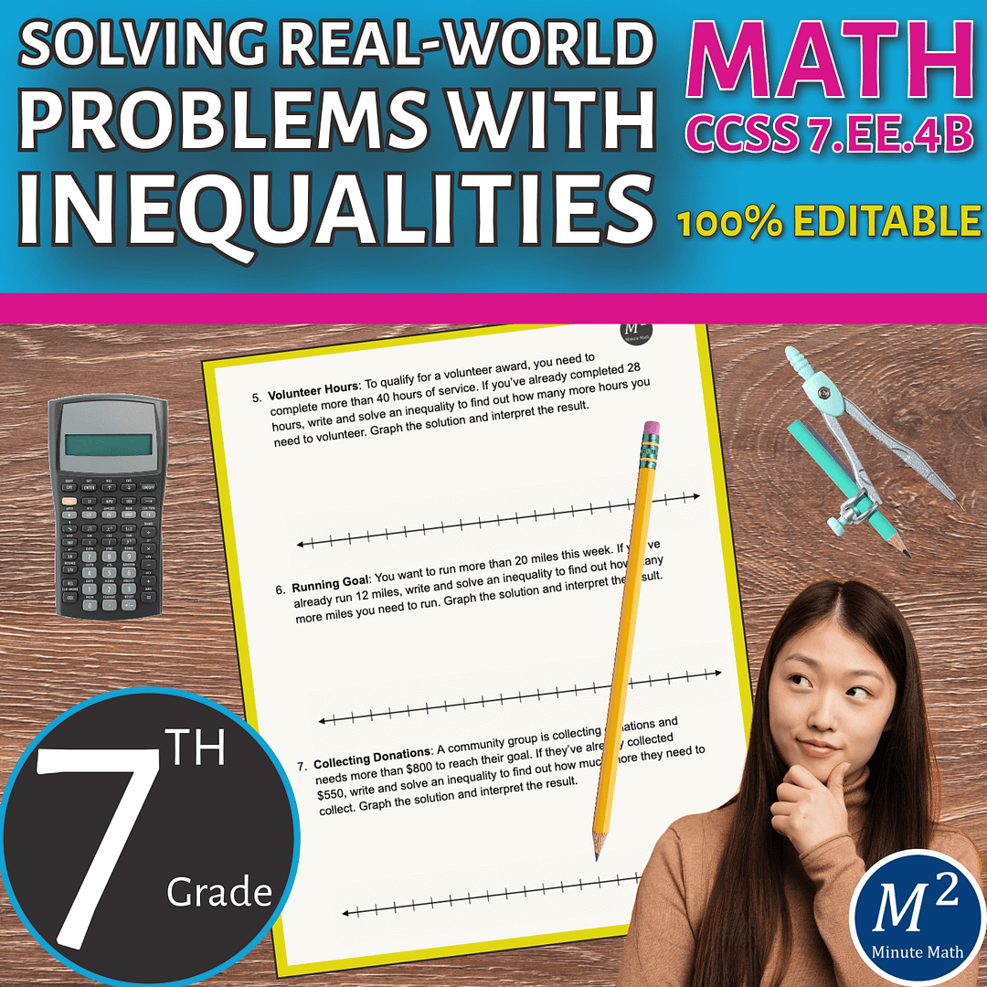 15 thoughtfully crafted word problems that guide students through setting up and solving inequalities, helping them understand and apply these skills in practical contexts. - Part 2: Graphing and Interpreting Solutions:
