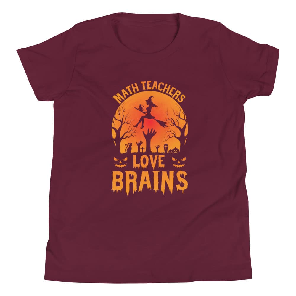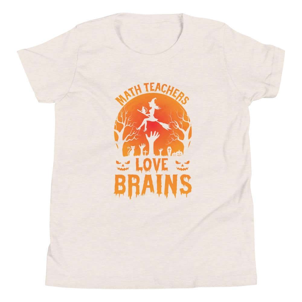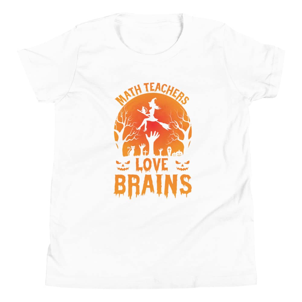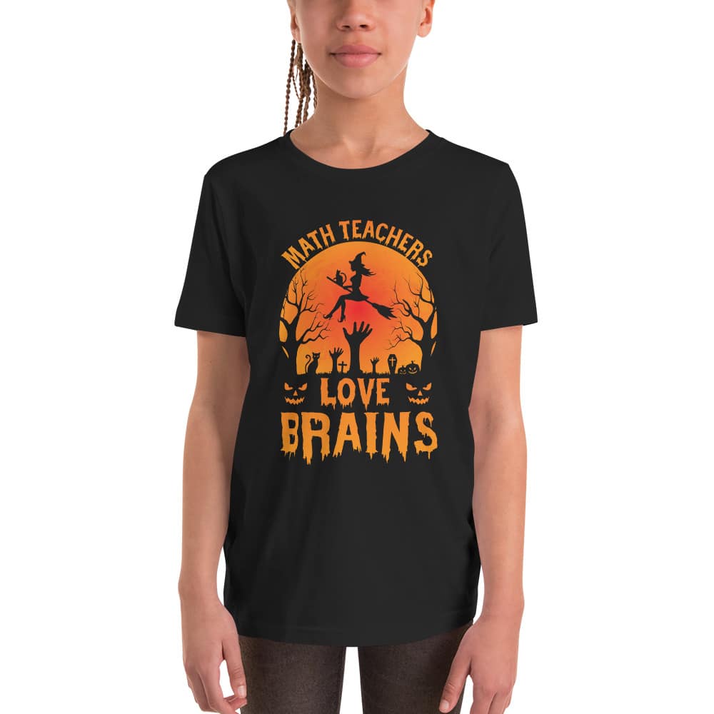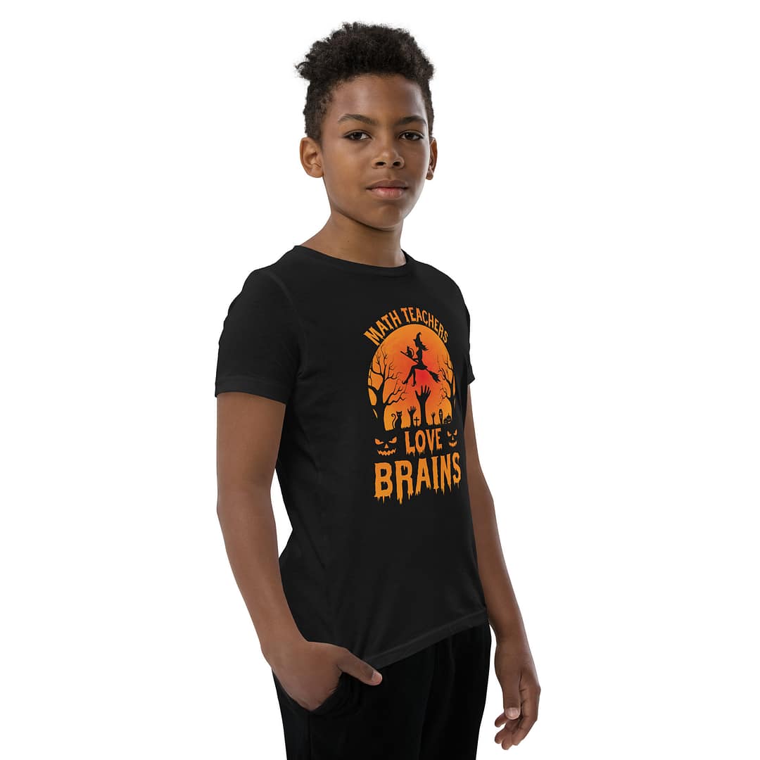 Get ready for some spooktacular fun this Halloween with our “Math Teachers Love Brains” youth short sleeve t-shirt! Whether you’re a young math prodigy, an aspiring math teacher, or just a kid with a knack for numbers, this shirt adds a dash of humor and style to your Halloween festivities. Designed with the comfort of young minds in mind, this shirt is perfect for all your trick-or-treating adventures.