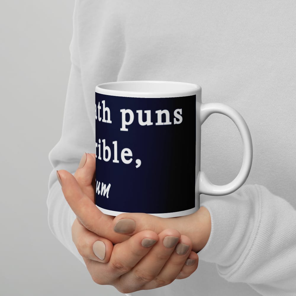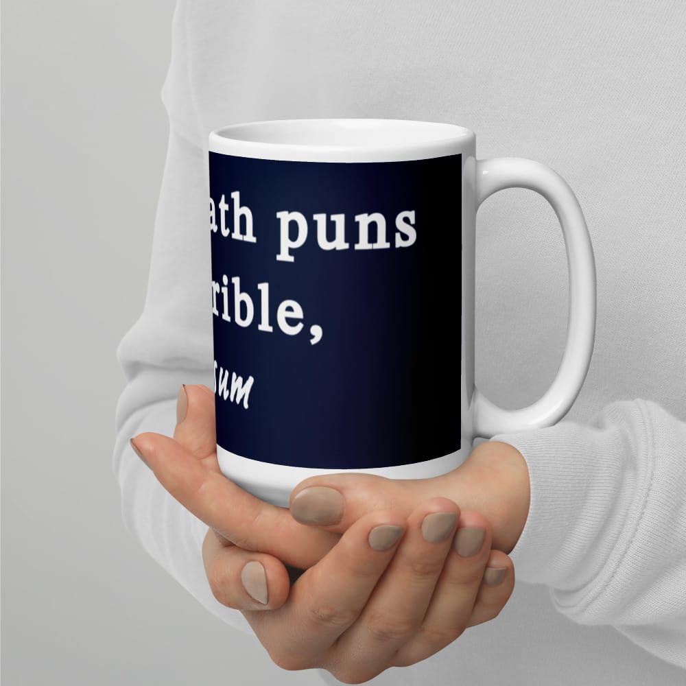 Not All Math Puns are Terrible, Just Sum Mug. Whether you’re drinking your morning coffee, evening tea, or something in between—this mug’s for you! It’s sturdy and glossy with a vivid print that’ll withstand the microwave and dishwasher.