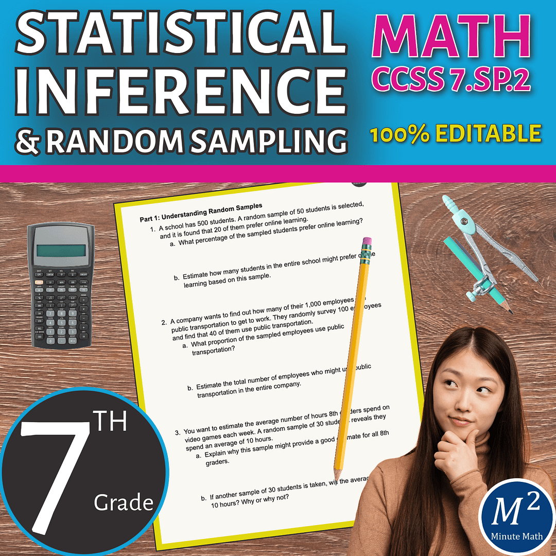 Enhance your students’ understanding of statistical inference and random sampling with this comprehensive practice worksheet. Designed for middle school math classes, this resource offers a variety of engaging problems that challenge students to draw inferences about populations based on random samples. The worksheet includes: