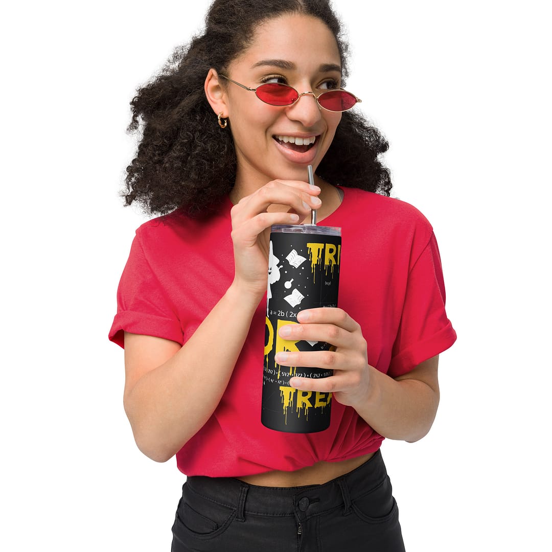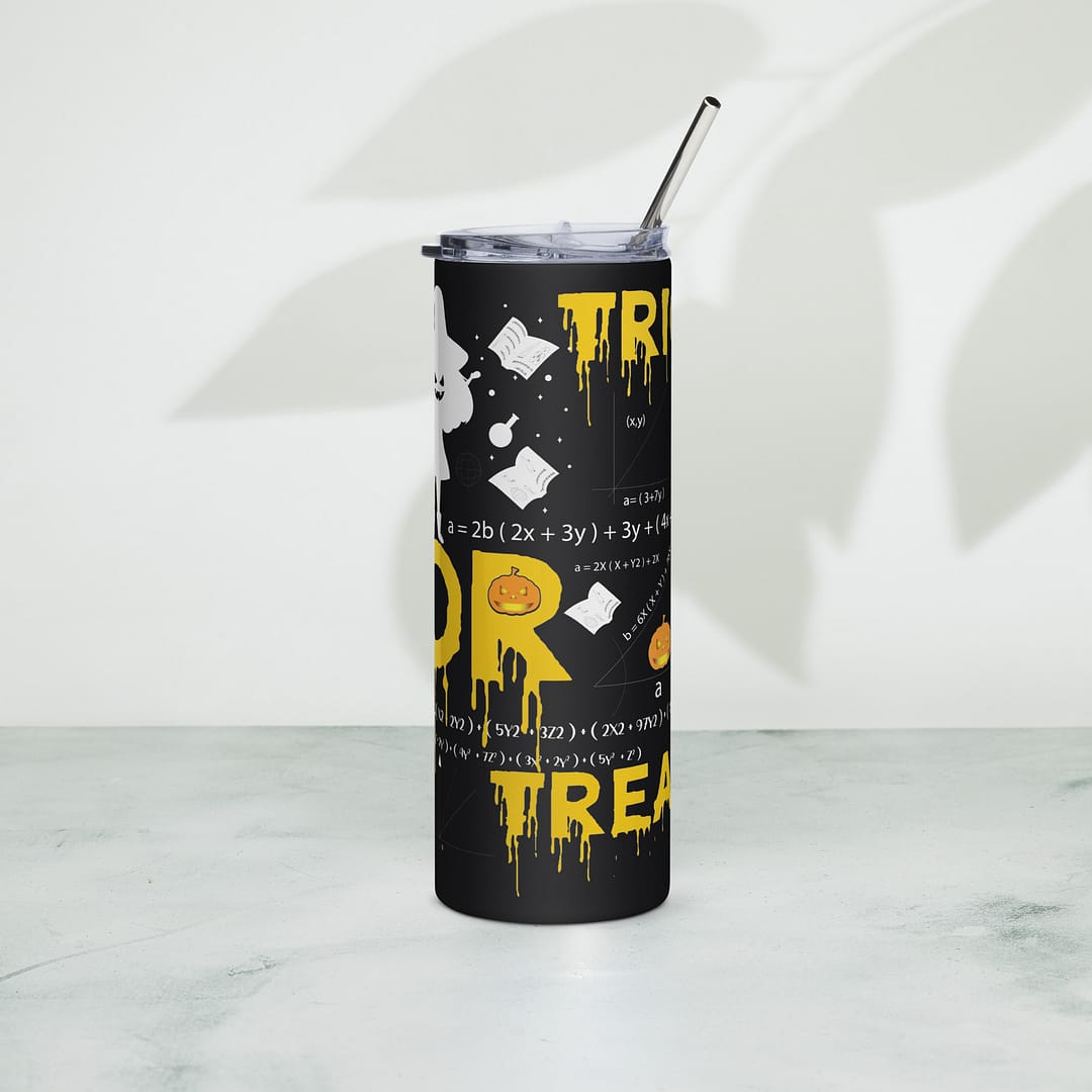 Crafted from high-quality stainless steel, our Trig or Treat tumbler not only looks sleek but also keeps your beverages at the perfect temperature for hours. Whether you’re sipping your morning coffee, enjoying a cold beverage, or staying hydrated throughout the day, this tumbler is a reliable companion. It’s an ideal choice for math teachers, students, or anyone who wants to add a bit of humor and intellect to their daily hydration routine. Grab one for yourself or gift it to a math-loving friend, and let them proudly display their sweet tooth for math puns wherever they go!