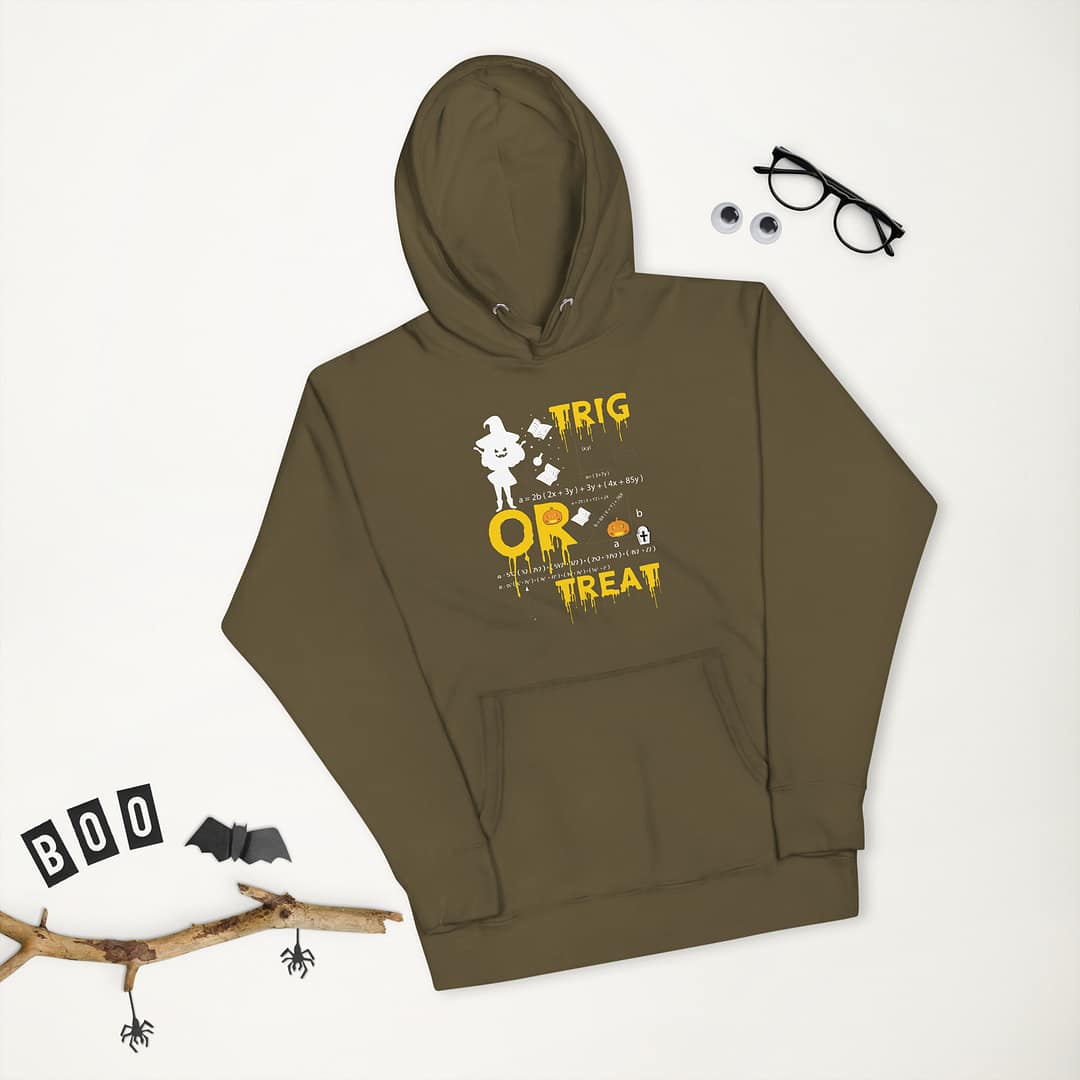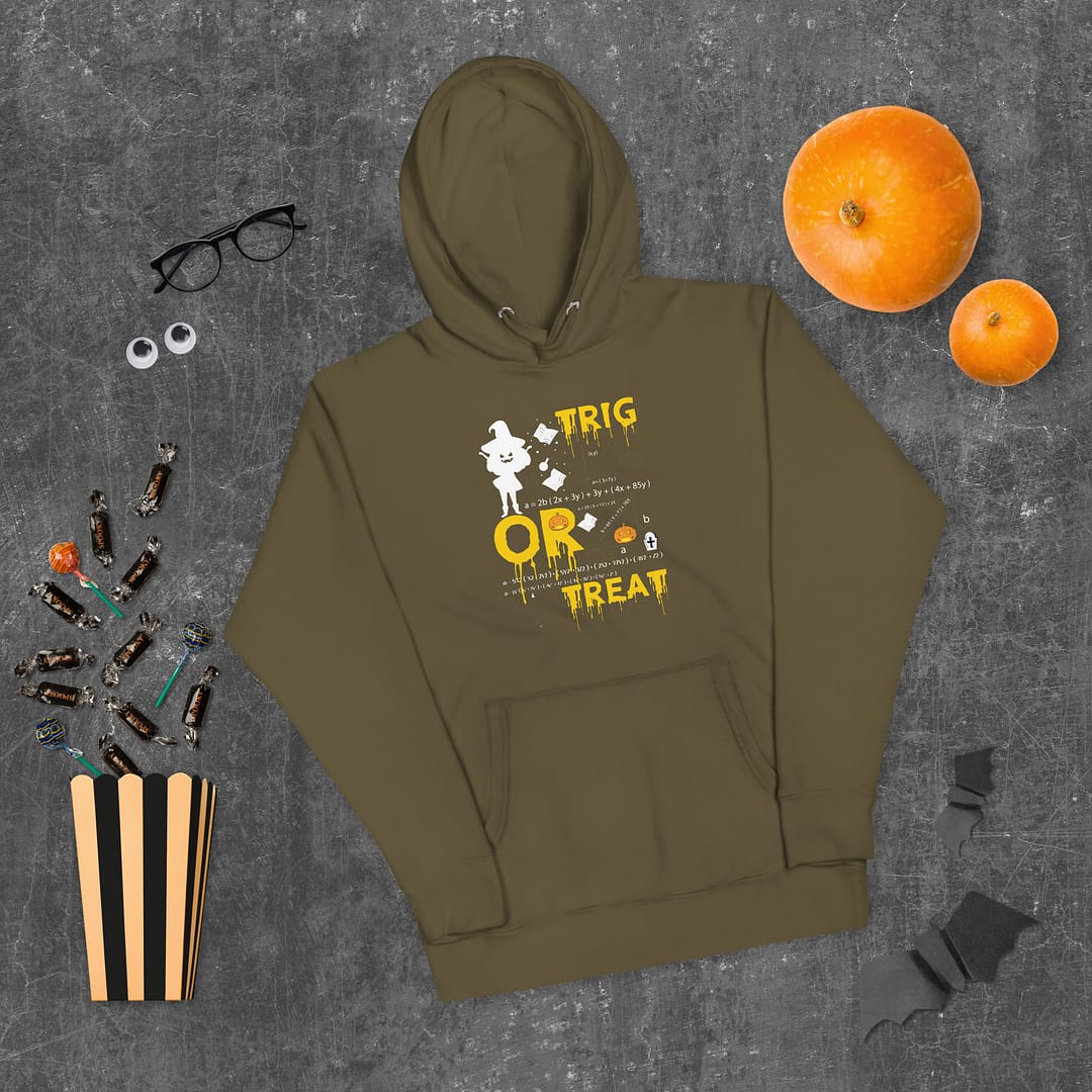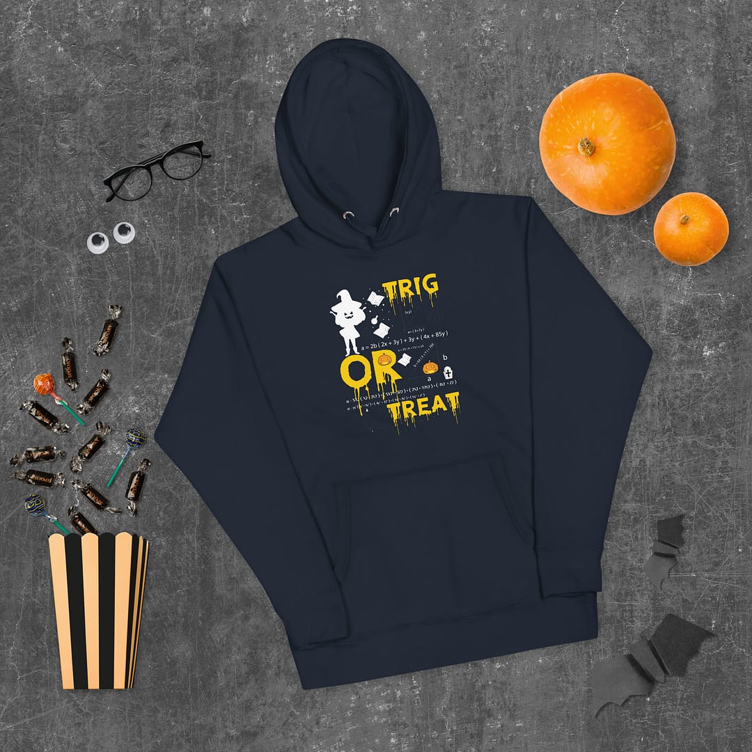 Made from cozy and warm fabric, our Trig or Treat hoodie is perfect for keeping you comfortable and stylish throughout the spooky season. Whether you’re solving equations or counting candy corn, this hoodie will keep you in the Halloween spirit while showing off your mathematical wit. It’s ideal for math teachers, students, or anyone who wants to add a touch of humor and intellect to their Halloween celebrations. Grab your Trig or Treat hoodie today and let the world know that you’re here for the sweetest math puns this Halloween!